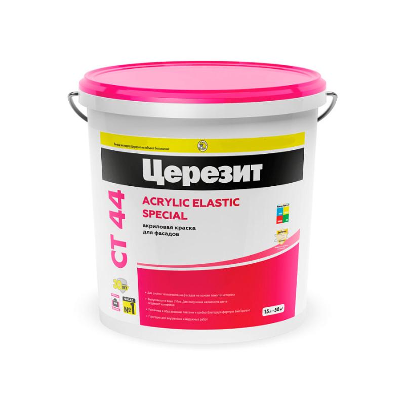 Акриловая краска CT 44 предназначена для окрашивания минеральных и акриловых декоративных штукатурных покрытий, таких как CT 35, CT 137, CT 60, CT 63 и CT 64, а также бетона, цементно-песчаных, цементно-известковых и известковых штукатурок, как внутри, так и снаружи зданий. Ceresit CT 44 (Церезит CT 44) представляет собой фасадную краску на воднодисперсионной основе.